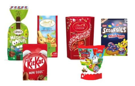 Alors que les poissons d’avril sont encore accrochés aux manteaux, c’est déjà un autre événement qui occupe la majorité des esprits : la chasse aux œufs de Pâques de ce dimanche 5 avril. Pour vous aider à choisir les meilleures références à cacher et estimer les quantités que l’on peut donner à son enfant sans nuire à sa santé, nous avons acheté 15 références de marques nationales (Kinder Schokobons, Lapin Or Lindt, Lapin Milka, Chasse aux œufs Smarties) ou de marques de distributeurs (Carrefour, Lidl, Action, Monoprix…).